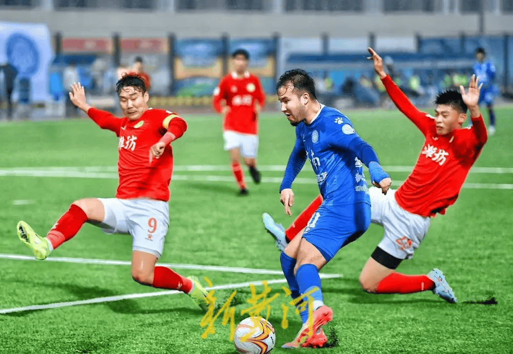 下半场开场后不久,主队率先进球,1比0领先。第78分钟,潍坊队扳回一球,比分变成1比1。伤停补时阶段,主队获得一个点球,21号球员主罚命中,最终主场2比1获得胜利。