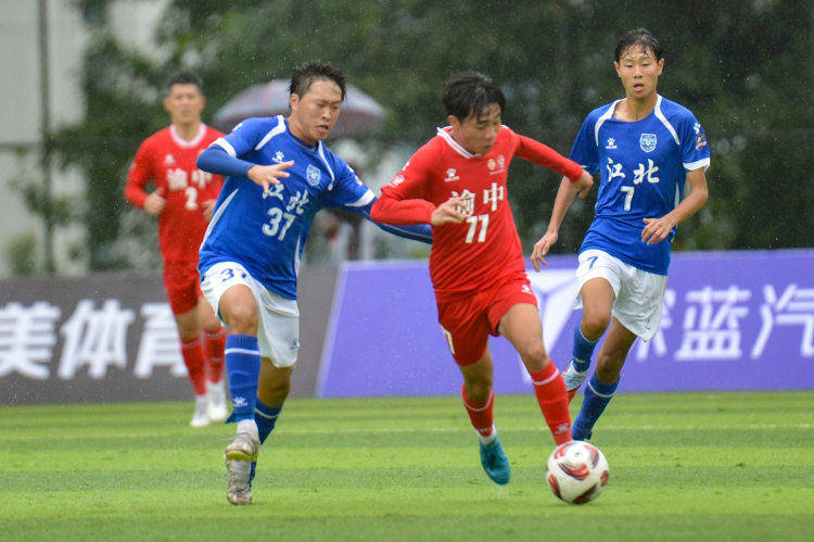 与此前三场比赛相同,渝中半岛队在本场比赛中,同样遇到了比分落后的情况。雨中鏖战,江北信也科技队率先攻入一球,力争取胜的渝中半岛队一时间陷入被动。