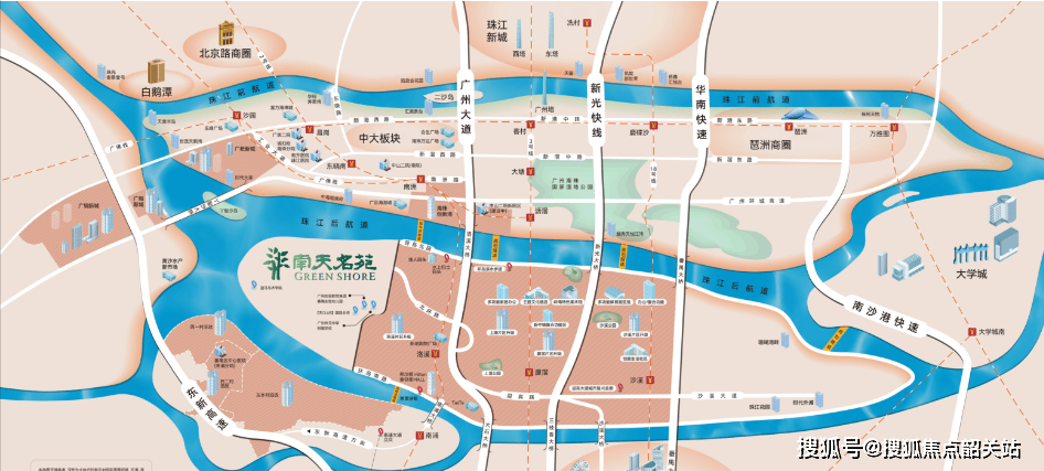 洛溪岛作为继二沙岛之后的广州第二个中轴岛,已被纳入主城区核心地段,随着广州 南拓 战略推进,成为连接珠江新城、广州塔与番禺新城的重要节点。项目所在的珠江后航道高端豪宅居住带,正逐步发展为集生态、居住、社交于一体的高端生活区。