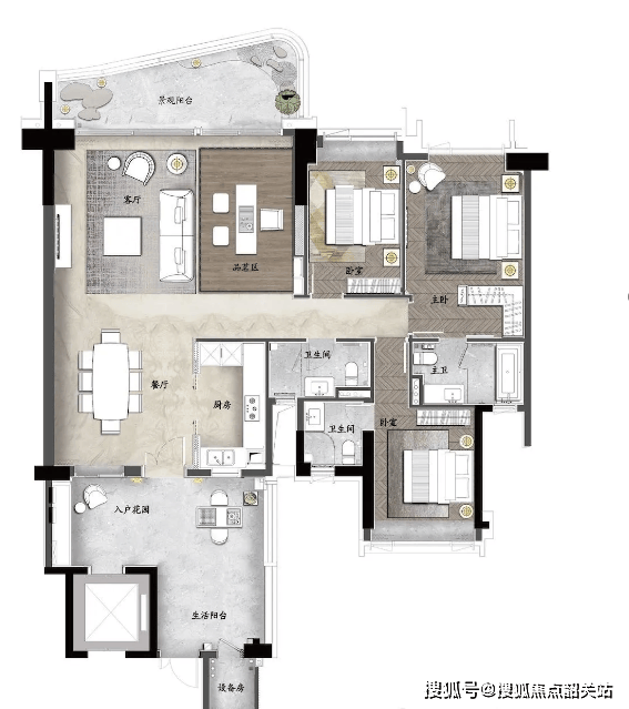 建筑设计规划方面,项目采用点状式布局,所有楼栋均为南北朝向,确保户户均享超大景观资源及超宽楼距,最大化提升居住的舒适度与私密性。叠墅组团引入家族聚居的概念,打造家族同宅不同门的居住体验,领衔第三代叠墅封面作品。在园林设计上,灵感来源于欧洲庄园的中央花园设计,以岛居庄园为主题,打造三轴五境新古典主义园林,韵承艺术臻境,为业主营造优雅的居住环境。