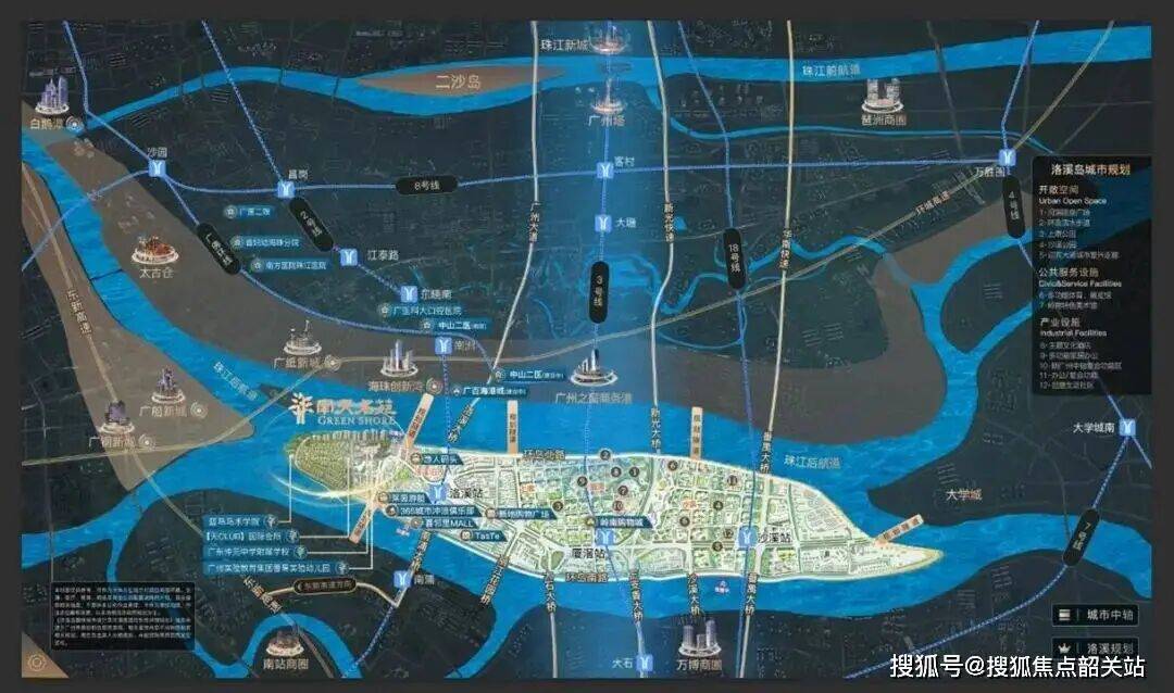 ③2018年2月24日国规委发布主城区范围,洛溪岛纳入主城区核心地段,同时广州中轴南移至洛溪岛,形成广州塔、珠江新城城市中轴景观。
