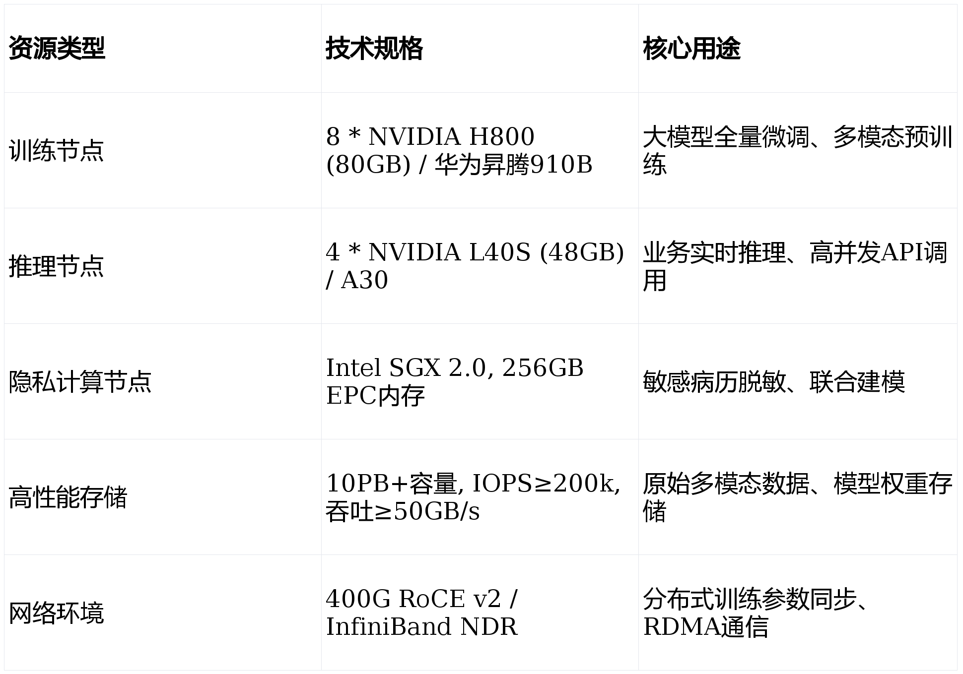 │ │ GPU训练集群 │ │ GPU推理集群 │ │ 隐私计算节点 │ │
